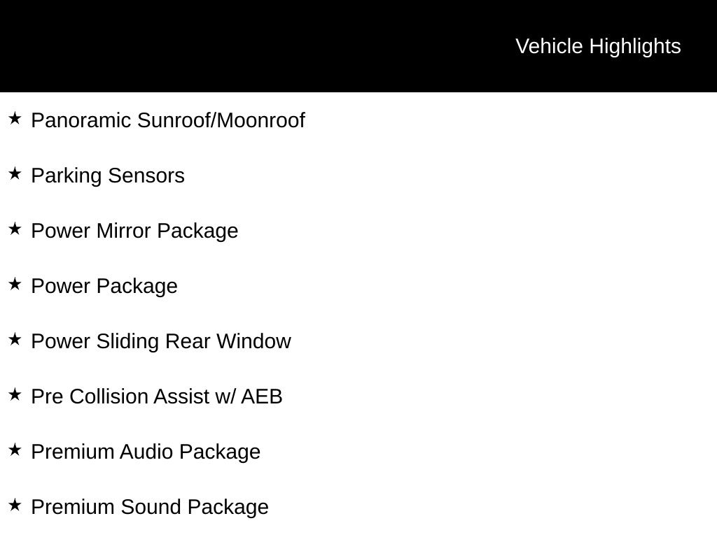 - Panoramic Sunroof/Moonroof