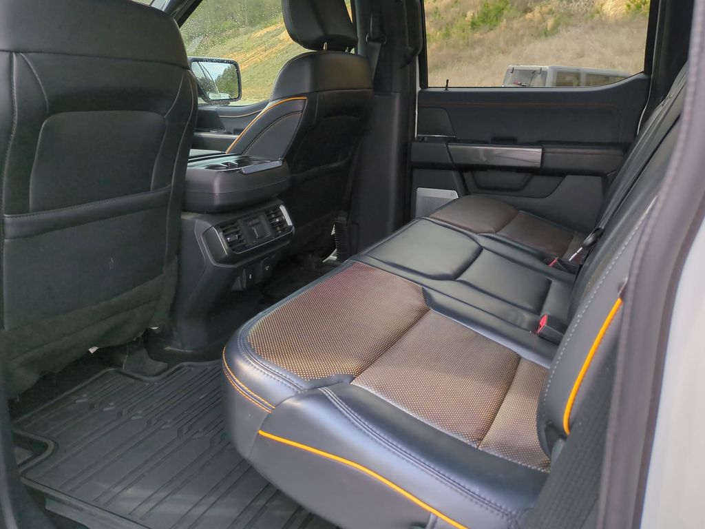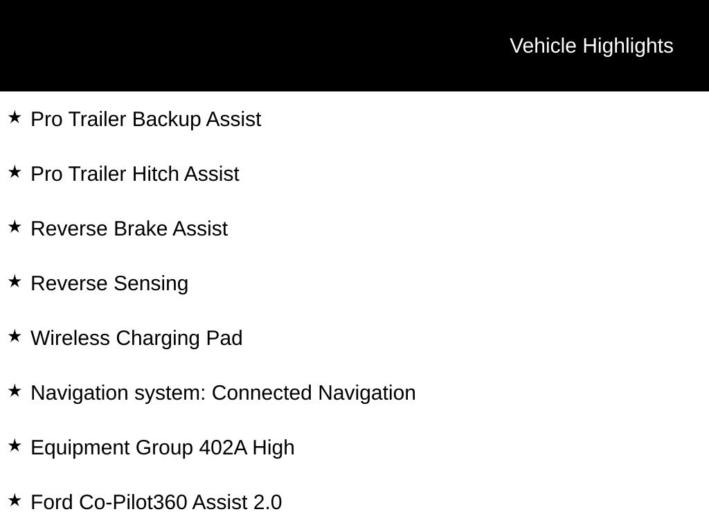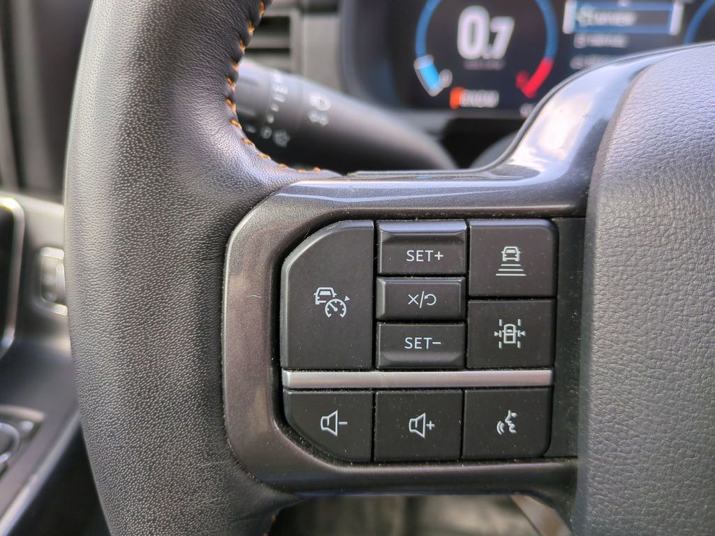 Beyond the impressive powertrain, this F-150 is loaded with premium features that elevate your driving experience. The 12" productivity screen, 360-degree camera, and advanced driver assistance technologies like Intelligent Adaptive Cruise Control and Evasive Steering Assist provide unparalleled convenience and safety. The panoramic sunroof, leather-trimmed seats, and premium audio system create a luxurious and immersive cabin environment.