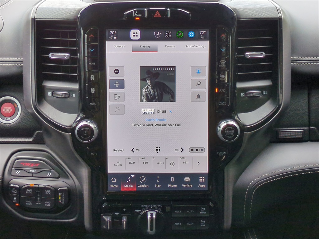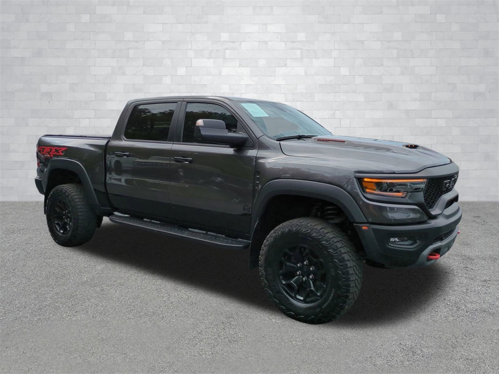 Granite Crystal Metallic Clearcoat 2023 Ram 1500 TRX 4WD 4WD TRX 4WD 12" LCD Productivity Touchscreen, Adaptive Suspension, Android Auto, Apple Carplay, Backup Camera, Blind Spot Monitoring, Bluetooth w/ Audio Streaming, Cold Weather Package, Front & Rear Park Assist, Front Pedestrian Braking, Hill Descent Control, Lane Keeping System, Leather Seats, LED Foglights, Memory Package, Multimedia Package, Off Road Package, Parking Sensors, Performance Handling Package, Performance Package, Power Mirror Package, Power Package, Power Sliding Rear Window, Preferred Equipment Package, Premium Audio Package, Premium Sound Package, Pro Trailer Backup Assist, Pro Trailer Hitch Assist, Push Button Start, Rear Cross Traffic Alert, Remote Start, Reverse Brake Assist, Reverse Sensing, Safety Package, Skid Plate Package, Tow Package, Trailer Package, TUNER, Upgraded Exhaust, 4D Crew Cab, 6.2L Supercharged HEMI V8 SRT, 8-Speed Automatic, 4WD, #2 Seat Foam Cushion, 2-Door Passive Entry, Front Door Locks, 4 Way Front Headrests, 4-Wheel Disc Brakes, ABS brakes, Accent Color Door Handles, Adaptive Cruise Control w/Stop & Go, Advanced Safety Group, Apple CarPlay/Android Auto, Auto High-beam Headlights, Auto-dimming door mirrors, Auto-dimming Rear-View mirror, Automatic temperature control, Black Exterior Mirrors, Black Power-Fold Trailer Tow Mirrors, Blind Spot & Cross Path Detection, Bucket Seats, Center Console Parts Module, Compass, Delay-off headlights, Digital Rearview Mirror, Driver Seat Memory, Driver/Passenger Wrapped Assist Handles, Electronic Stability Control, Exterior Mirrors Courtesy Lamps, Exterior Mirrors w/Heating Element, Exterior Mirrors w/Memory, Exterior Mirrors w/Supplemental Signals, Front Center Armrest w/Storage, Front Door Accent Lighting, Front dual zone A/C, Front fog lights, Front Seat Back Map Pockets, Front wheel independent suspension, Full Length Premium Upgraded Floor Console, Fully automatic headlights, harman/kardon 19 Speaker Premium Sound, Heads-Up Display, Heated door mirrors, Heated Front Seats, Heated Second Row Seats, Heated Steering Wheel, Illuminated entry, IP LED Ambient Light Pipe, Lane Keep Assist, Leather Shift Knob, Leather steering wheel, Leather Trimmed Bucket Seats, Leather/Suede Flat-Bottom Steering Wheel, LED CHMSL Lamp, Low tire pressure warning, Luxury Front Door Trim Panel, Mirror Clearance/Running Lights, Mirror-Mounted Aux Reverse Lamps, MOPAR Bright Pedal Kit, MOPAR Off-Road Style Running Boards, Navigation System, Outside temperature display, Overhead console, ParkSense Front/Rear Park Assist w/Stop, ParkView Rear Back-Up Camera, Pedestrian Emergency Braking, Pick-Up Box Lighting, Power 4-Way Driver Lumbar Adjust, Power 4-Way Passenger Lumbar Adjust, Power 8-Way Driver & Passenger Seats, Power Adjustable Pedals w/Memory, Power door mirrors, Power-Folding Mirrors, Premium Wrapped IP Bezel, Quick Order Package 29Y, Radio data system, Radio: Uconnect 5 Nav w/12.0" Display, Radio/Driver Seat/Mirrors/Pedals Memory, Rain Sensitive Windshield Wipers, Rear 60/40 Folding Seat, Rear 60/40 Folding Split Recline Seat, Rear Door Accent Lighting, Rear seat center armrest, Rear step bumper, Rear Underseat Compartment Storage, Rear Window Defroster, Remote keyless entry, Remote Tailgate Release, Sport steering wheel, Steering wheel mounted audio controls, Sun Visors w/Illuminated Vanity Mirrors, Surround View Camera System, Tailgate Ajar Warning Lamp, Telescoping steering wheel, Tilt steering wheel, Traction control, Trailer Brake Control, Trailer Reverse Steering Control, Trailer Tow Mirrors, Trip computer, TRX Level 2 Equipment Group, Turn signal indicator mirrors, Universal Garage Door Opener, Ventilated Front Seats, Ventilated Rear Seats, Wheels: 18" x 9" Black Paint/Polish Aluminum, Wireless Chargi