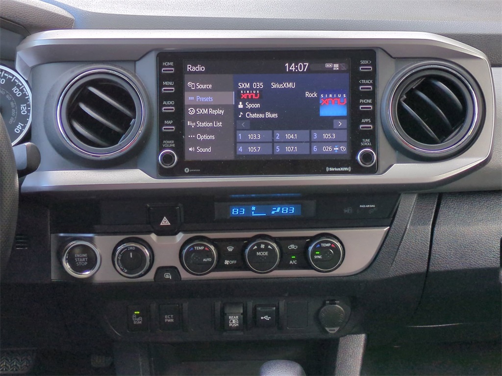 Blue Crush Metallic 2023 Toyota Tacoma SR5 V6 4WD 4WD SR5 V6 4WD Adaptive Cruise Control, Backup Camera, Driver Attention Warning, Lane Departure Warning, Lane Keeping System, Power Mirror Package, Power Package, Tow Package, Toyota Safety Sense, Trailer Package, 4D Double Cab, 3.5L V6, 6-Speed, 4WD, ABS brakes, Active Cruise Control, Air Conditioning, Alloy wheels, AM/FM radio: SiriusXM, Apple CarPlay/Android Auto, Auto High-beam Headlights, Auto-dimming Rear-View mirror, Automatic temperature control, Black Headlamp Bezel, Blind Spot Monitor w/Rear Cross Traffic Alert, Brake assist, Charcoal Grille w/Chrome Surround, Color-Keyed Overfenders, Daytime Running Lamps, Electronic Stability Control, Emergency communication system: Safety Connect (1-year trial), Exterior Parking Camera Rear, Front Bucket Seats, Front Center Armrest, Front Door Smart Key System w/Push Button Start, Front dual zone A/C, Front Fog & Driving Lamp, Front fog lights, Front Seats, Front wheel independent suspension, Heated door mirrors, Illuminated entry, Low tire pressure warning, Outside temperature display, Overhead console, Power door mirrors, Power driver seat, Power Sliding Rear Window w/Privacy Glass, Power steering, Power windows, Remote keyless entry, Speed-sensing steering, Split folding rear seat, SR5 Package, Steering wheel mounted audio controls, Technology Package, Telescoping steering wheel, Tilt steering wheel, Traction control, Trip computer, Variably intermittent wipers.