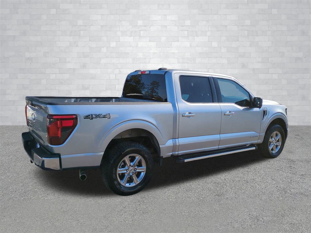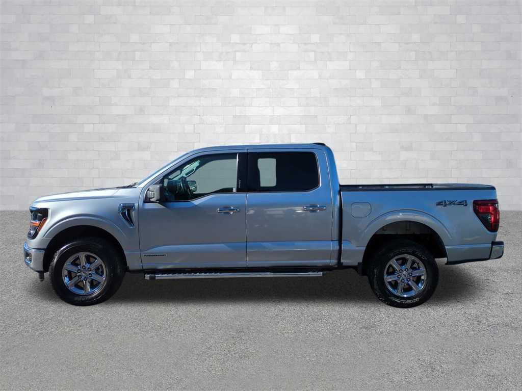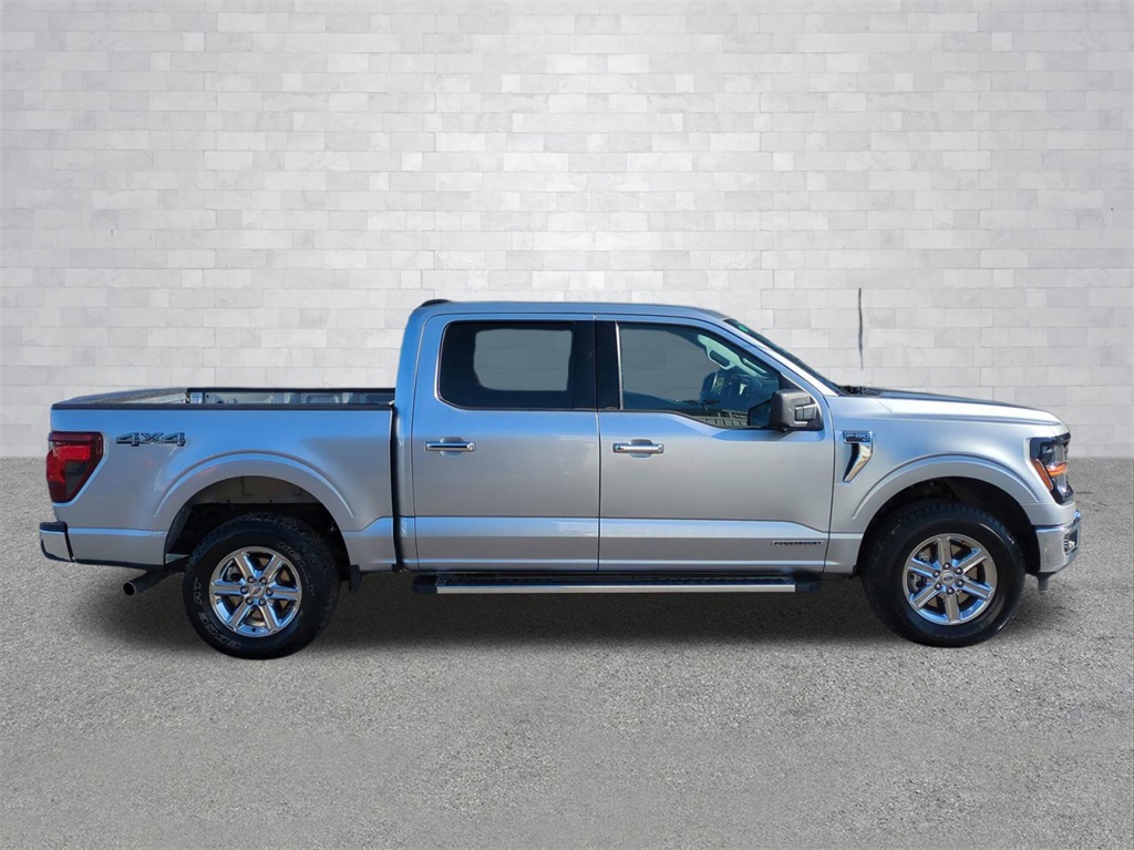 Iconic Silver Metallic 2024 Ford F-150 XLT 4WD Hybrid 4WD XLT 4WD Hybrid 12" LCD Productivity Touchscreen, 5G WiFi Hotspot Telematics, Auto Emergency Braking, Auto LED Headlights, Backup Camera, Blind Spot Monitoring, BLIS w/ Cross Traffic Alert, Bluetooth w/ Audio Streaming, Lane Keeping System, LED Foglights, Parking Sensors, Power Mirror Package, Power Package, Pre Collision Assist w/ AEB, Pro Trailer Backup Assist, Pro Trailer Hitch Assist, Reverse Brake Assist, Reverse Sensing, XLT Package, 4D SuperCrew, 3.5L PowerBoost Full-Hybrid V6, 10-Speed Automatic, 4WD, 4-Wheel Disc Brakes, 6 Speakers, ABS brakes, Auto High-beam Headlights, Auto-dimming Rear-View mirror, Automatic temperature control, Brake assist, Cloth 40/Console/40 Front Seats, Compass, Console Worksurface, Delay-off headlights, Electronic Locking w/3.73 Axle Ratio, Electronic Stability Control, Emergency communication system: SYNC 4 911 Assist, Equipment Group 301A Standard, Front dual zone A/C, Front fog lights, Front wheel independent suspension, Fully automatic headlights, Heated door mirrors, Illuminated entry, Low tire pressure warning, Mobile Office Package, Navigation system: Connected Navigation, Outside temperature display, Overhead console, Panic alarm, Partitioned Lockable Rear Storage, Power door mirrors, Power driver seat, Power steering, Power windows, Radio data system, Radio: AM/FM SiriusXM w/360L, Rear step bumper, Remote keyless entry, Security system, Split folding rear seat, Steering wheel mounted audio controls, SYNC 4 w/Enhanced Voice Recognition, Telescoping steering wheel, Tilt steering wheel, Traction control, Trip computer, Wheels: 18" Chrome-Like PVD.
