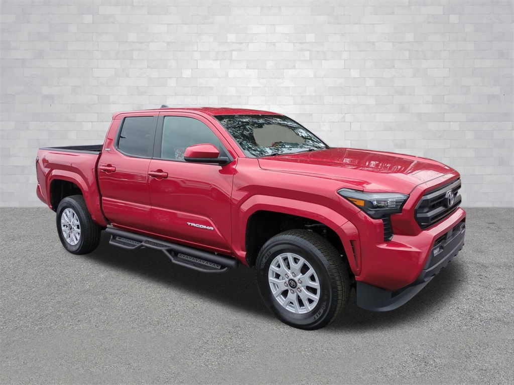 Supersonic Red 2024 Toyota Tacoma SR5 RWD SR5 8" Color Touchscreen, Adaptive Cruise Control, Backup Camera, Blind Spot Monitoring, Bluetooth w/ Audio Streaming, Lane Tracing Assist, Parking Sensors, Power Mirror Package, Power Package, Rear Cross Traffic Alert, Reverse Sensing, Skid Plate Package, Toyota Safety Sense, 4D Double Cab, 2.4L 4-Cylinder, 8-Speed Automatic, RWD, 4-Wheel Disc Brakes, 6 Speakers, ABS brakes, Alloy wheels, AM/FM radio: SiriusXM, Apple CarPlay/Android Auto, Auto High-beam Headlights, Auto-dimming Rear-View mirror, Brake assist, Electronic Stability Control, Emergency communication system: Safety Connect (1-year trial), Exterior Parking Camera Rear, Four wheel independent suspension, Front Center Armrest, Front fog lights, Fully automatic headlights, Heated door mirrors, Illuminated entry, Low tire pressure warning, Outside temperature display, Overhead console, Panic alarm, Power door mirrors, Power steering, Power windows, Radio: 8" Toyota Audio Multimedia, Rear step bumper, Rear window defroster, Remote keyless entry, Speed control, Speed-sensing steering, Split folding rear seat, Steering wheel mounted audio controls, Telescoping steering wheel, Tilt steering wheel, Traction control, Trip computer, Variably intermittent wipers, Wheels: 17" Styled Alloy.