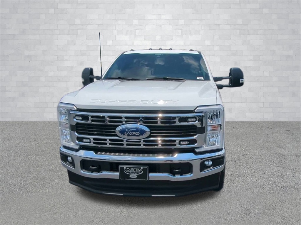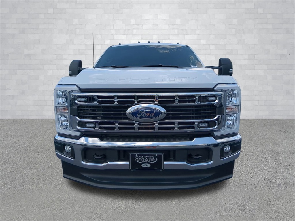 Oxford White 2025 Ford F-350SD XL DRW 4WD XL DRW 5G WiFi Hotspot Telematics, 8" Color Touchscreen, Backup Camera, Hill Start Assist, Power Mirror Package, Power Package, Power Sliding Rear Window, Preferred Equipment Package, Remote Start, Tow Package, Trailer Package, 4D Crew Cab/Chassis, Power Stroke 6.7L V8 DI 32V OHV Turbodiesel, 10-Speed Automatic, 4WD, 17" Forged Polished Aluminum Wheels, 4-Ton Hydraulic Jack, 4-Wheel Disc Brakes, ABS brakes, Brake assist, Bright Grille, Chrome Front Bumper, Compass, Delay-off headlights, Dual 68 AH/65 AGM Battery, Dual Diesel Fuel Tanks, Dual rear wheels, Emergency communication system: SYNC 4 911 Assist, Engine Block Heater, Fully automatic headlights, GVWR: 14,000 lb Payload Package, Halogen Fog Lamps, Heated door mirrors, Illuminated entry, Limited Slip w/4.10 Axle Ratio, Low tire pressure warning, Order Code 640A, Outside temperature display, Overhead console, Panic alarm, Platform Running Boards, Power door mirrors, Power steering, Power windows, Privacy Glass w/Power Sliding Rear Glass, Rear View Camera & Prep Kit, Rear Window Defroster, Remote keyless entry, Remote Start, Security system, Speed control, Split folding rear seat, Steering wheel mounted audio controls, Telescoping steering wheel, Tilt steering wheel, Traction control, Trip computer, Turn signal indicator mirrors, Variably intermittent wipers, XL Chrome Package.