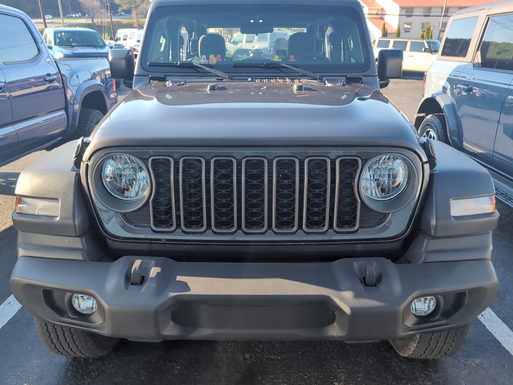 Granite Crystal Metallic Clearcoat 2025 Jeep Wrangler Sport 4WD 4WD Sport 4WD 12" LCD Productivity Touchscreen, Android Auto, Apple Carplay, Backup Camera, Blind Spot Monitoring, Bluetooth w/ Audio Streaming, Hill Start Assist, Preferred Equipment Package, Push Button Start, Skid Plate Package, 2D Sport Utility, 3.6L V6 24V VVT, 6-Speed Manual, 4WD, 4-Wheel Disc Brakes, 8 Speakers, ABS brakes, AM/FM radio: SiriusXM, Apple CarPlay/Android Auto, Aux Battery, Brake assist, Cloth Low-Back Bucket Seats, Compass, Delay-off headlights, Electronic Stability Control, Front Center Armrest w/Storage, Front fog lights, Illuminated entry, Integrated roll-over protection, Low tire pressure warning, Outside temperature display, Panic alarm, ParkView Rear Back-Up Camera, Power steering, Power windows, Quick Order Package 23B Sport, Radio data system, Radio: Uconnect 5 w/12.3" Display, Remote keyless entry, Speed control, Steering wheel mounted audio controls, Telescoping steering wheel, Tilt steering wheel, Traction control, Trip computer, Variably intermittent wipers.