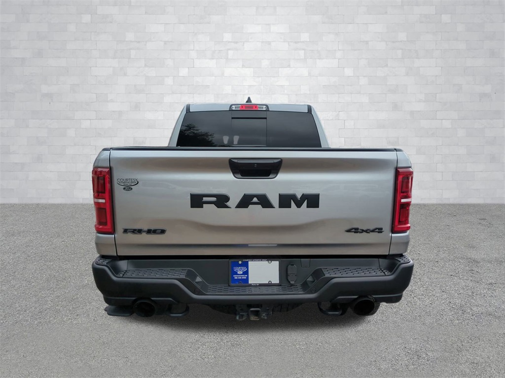 Billet Silver Metallic Clearcoat 2025 Ram 1500 RHO 4WD 4WD RHO 4WD 12" LCD Productivity Touchscreen, Adaptive Cruise Control, Adaptive Suspension, Auto LED Headlights, Backup Camera, Cold Weather Package, Front Pedestrian Braking, Full Speed Auto Collision Warning Plus, Lane Keeping System, Leather Seats, LED Foglights, Off Road Package, Performance Package, Power Mirror Package, Power Package, Preferred Equipment Package, Push Button Start, Remote Start, Skid Plate Package, Tow Package, Trailer Package, 4D Crew Cab, 3.0L I6, 8-Speed Automatic, 4WD, 10 Speakers, 4-Wheel Disc Brakes, 4G LTE Wi-Fi Hot Spot, ABS brakes, Adaptive suspension, Adjustable pedals, AM/FM radio: SiriusXM with 360L, Apple CarPlay/Android Auto, Auto High-beam Headlights, Auto Power-Folding Mirrors, Auto-dimming door mirrors, Auto-Dimming Exterior Driver Mirror, Auto-dimming Rear-View mirror, Automatic temperature control, Bed Utility Group, Brake assist, Compass, Delay-off headlights, Electronic Stability Control, Exterior 115V AC Outlet, Exterior Mirrors Courtesy Lamps, Exterior Mirrors w/Heating Element, Exterior Mirrors w/Supplemental Signals, Flareside Box, Front Center Armrest w/Storage, Front dual zone A/C, Front fog lights, Front wheel independent suspension, Fully automatic headlights, Garage door transmitter, GPS Navigation, HD Radio, Heated door mirrors, Heated front seats, Heated steering wheel, Illuminated entry, Integrated Voice Command w/Bluetooth, Leather Shift Knob, Leather steering wheel, Leather Trimmed Bucket Seats, Low tire pressure warning, MOPAR 4 Adjustable Cargo Tie-Down Hooks, MOPAR Deployable Bed Step, MOPAR Spray In Bedliner, Navigation System, Outside temperature display, Overhead console, Panic alarm, ParkView Rear Back-Up Camera, Power door mirrors, Power driver seat, Power passenger seat, Power steering, Power windows, Quick Order Package 22Y RHO, Radio data system, Radio: Uconnect 5 Nav w/12.0" Display, Rear seat center armrest, Rear step bumper, Remote keyless entry, Security system, Speed control, Split folding rear seat, Sport steering wheel, Steering wheel mounted audio controls, Telescoping steering wheel, Tilt steering wheel, Traction control, Trip computer, Turn signal indicator mirrors, USB Host Flip, Variably intermittent wipers, Wheels: 18" x 9" Black Paint/Polish Aluminum.