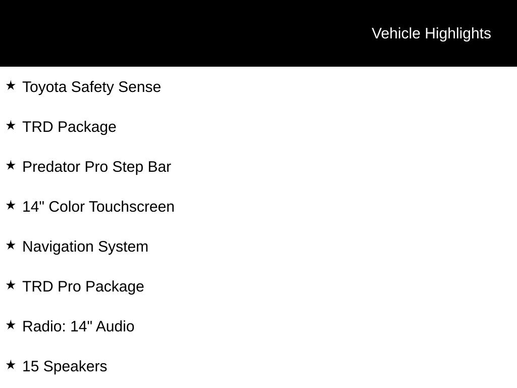 - Wheels: 18" Matte-Black TRD Alloy